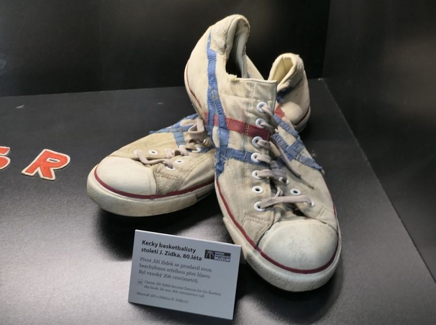 Jiří Zídek starší, kterého baskeťáci oslovovali Andreji, svázal kariéru především s týmem Slavia VŠ Praha. Ale jedny, jak se říká, už spíše z posledních kecek, nosil třeba ve finském klubu Forssa Alku. Jako hrající trenér měl průměr 43 body na zápas! Potrhané boty, které vystavuje NaBaMu, nazouval v osmdesátých letech.